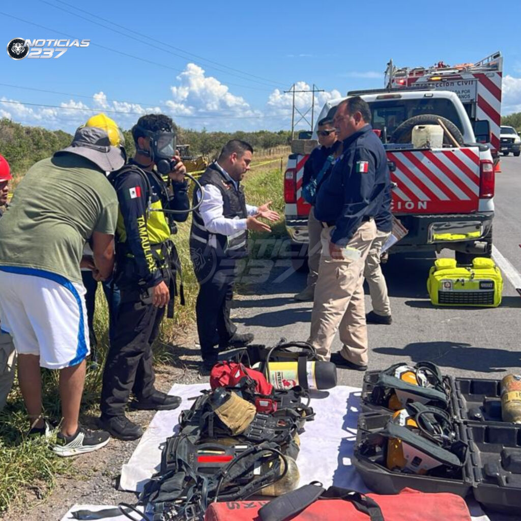 El incidente fue reportado alrededor de las 9:30 horas, movilizando a elementos de la Guardia Estatal y Protección Civil. Un bombero, en un acto desesperado, ingresó para rescatar a uno de los trabajadores con apoyo de la Policía Estatal. El sobreviviente fue trasladado de emergencia a un hospital en Ciudad Victoria, donde permanece en estado delicado.
